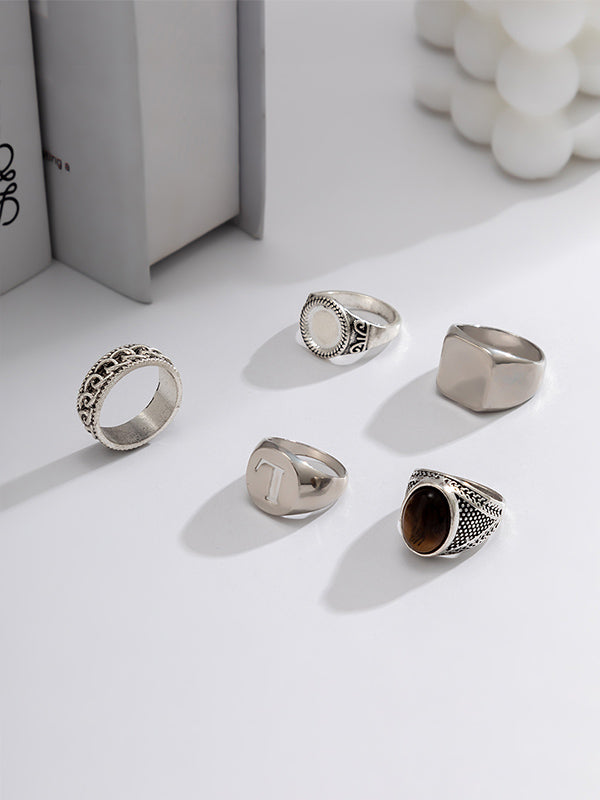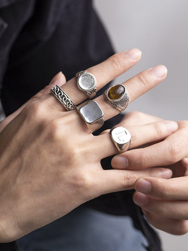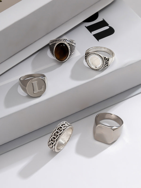 Vintage Kettenring mit Buchstabenprägung, 5 Stück/Set