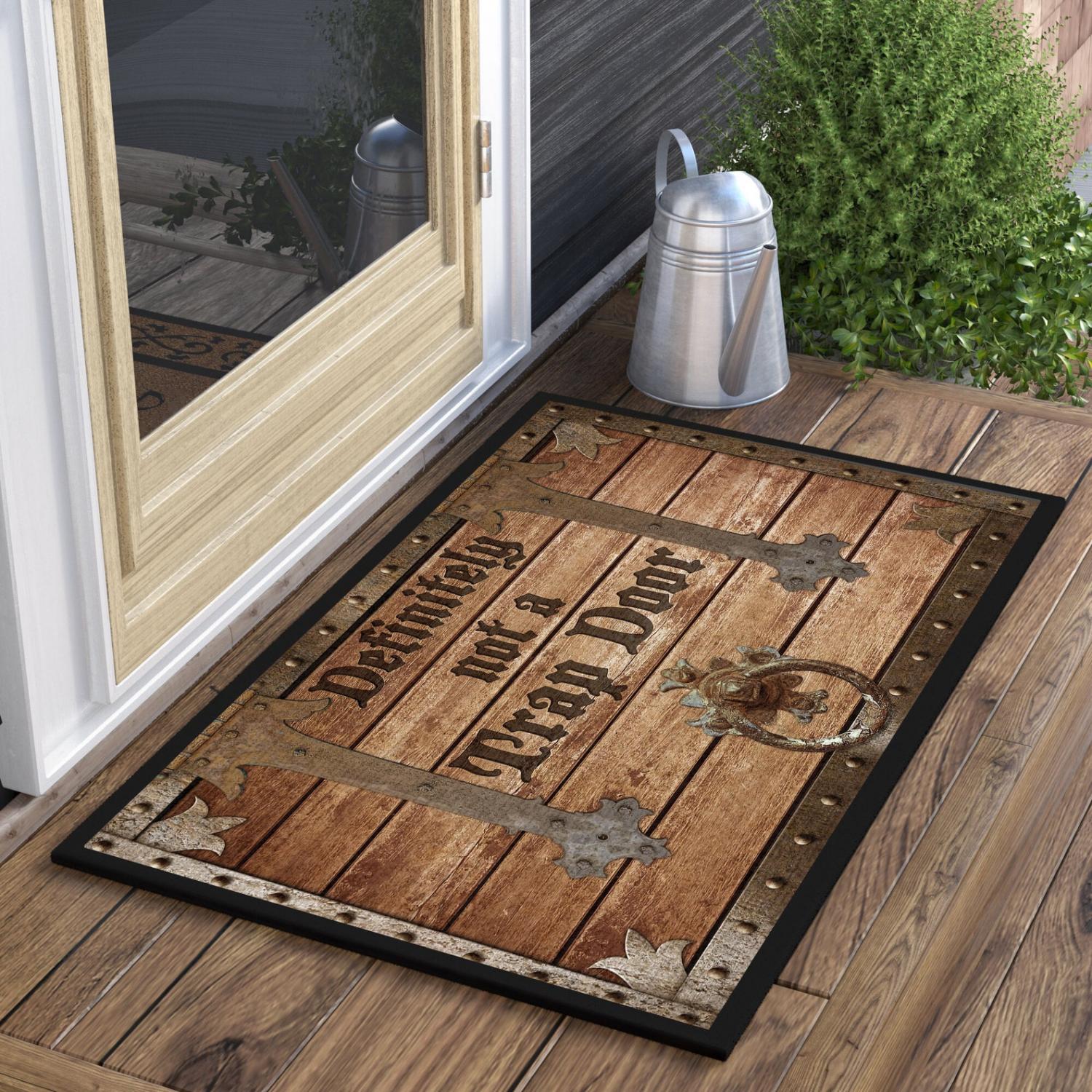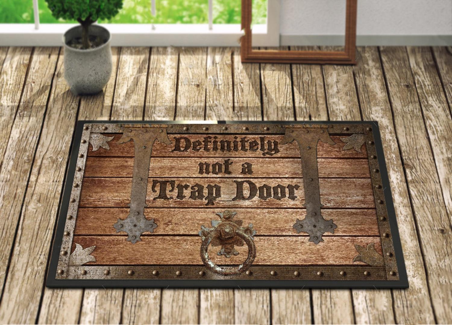 Diese Fußmatte mit der Aufschrift „Definitiv keine Falltür“ ist perfekt für Hausbesitzer, die gerne Witzbolde spielen.