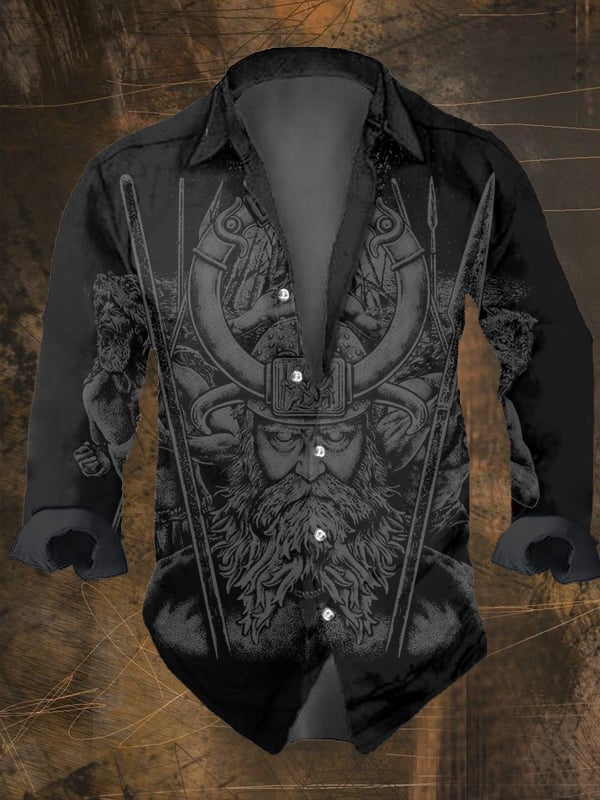 Langarmhemd für Herren mit Vintage-Wikinger-Print