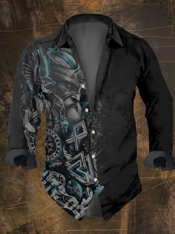 Langarmhemd für Herren mit Vintage-Wikinger-Print