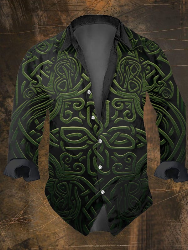 Langarmhemd für Herren mit Vintage-Wikinger-Print
