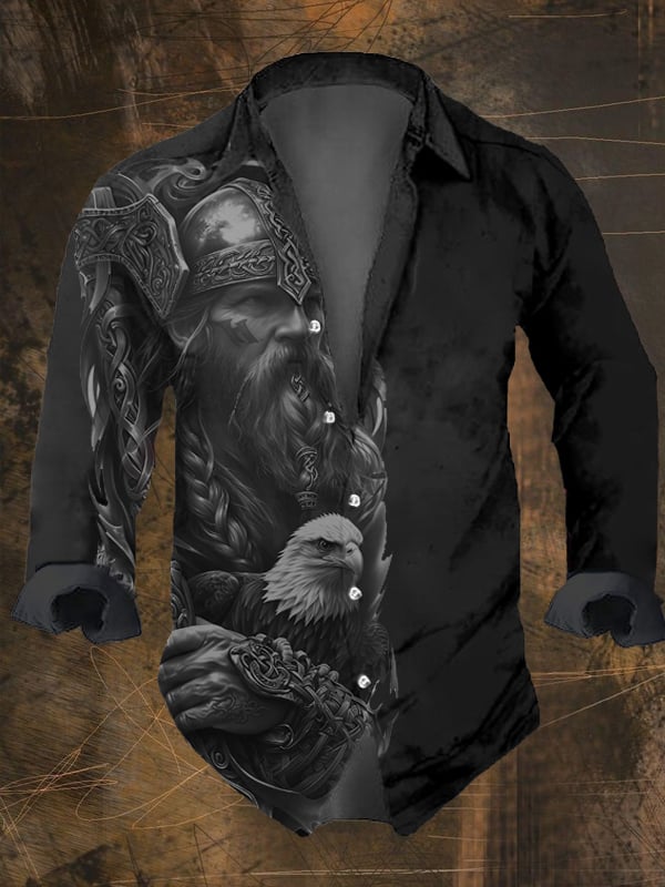 Langarmhemd für Herren mit Vintage-Wikinger-Print
