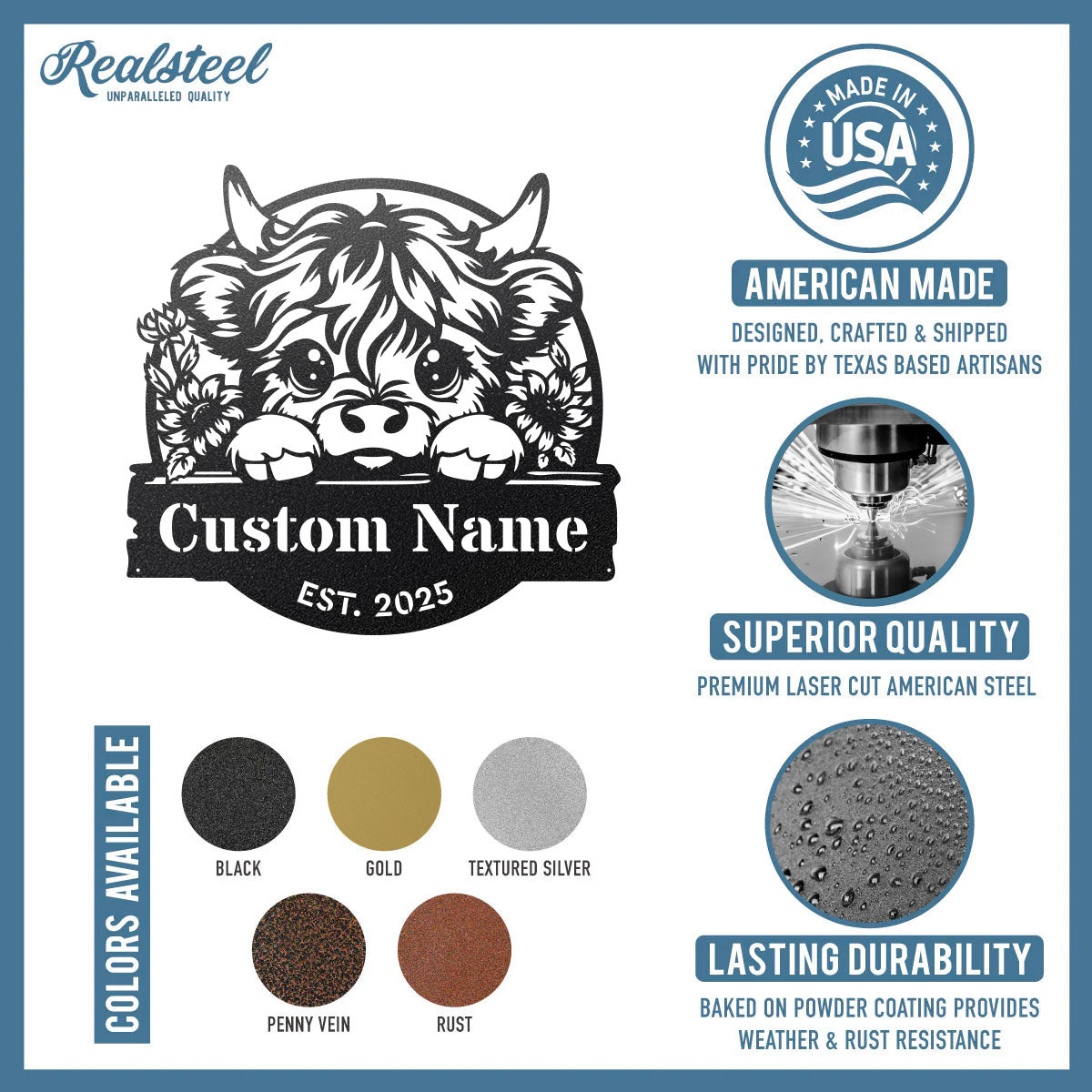 Handcrafted with pride in Texas, this RealSteel Original is a lasting tribute to country life and farmhouse elegance. Often imitated, but never replicated, be sure you order a RealSteel Original that's backed by our 2 year warranty and our industry's best customer service! Make your home feel even more welcoming with this Baby Calf with Sunflowers Monogram Wall Decor! 🌻🐮✨