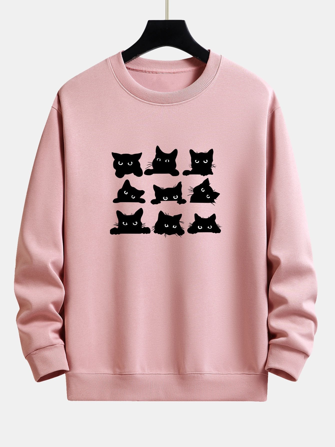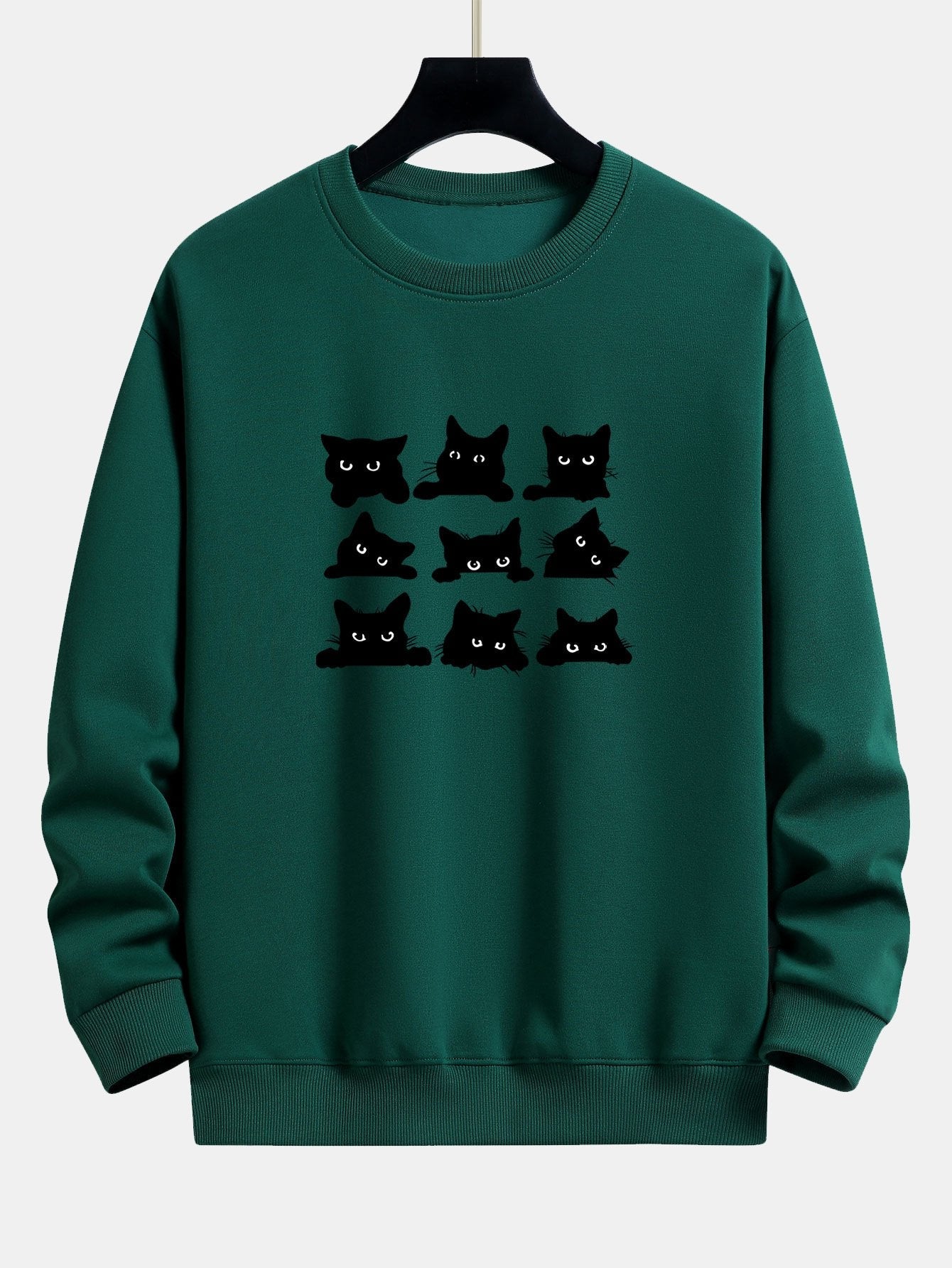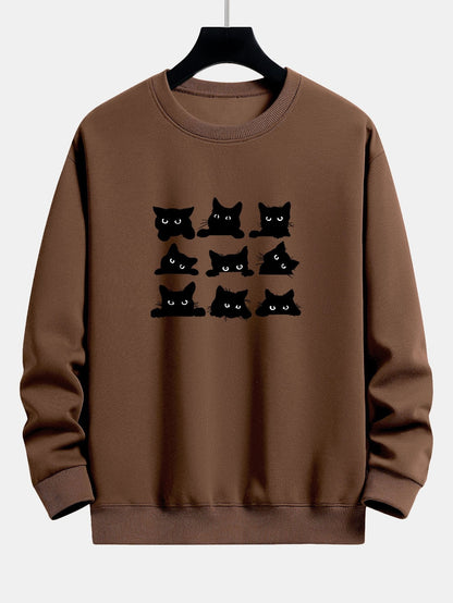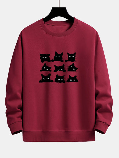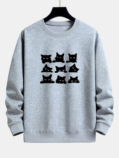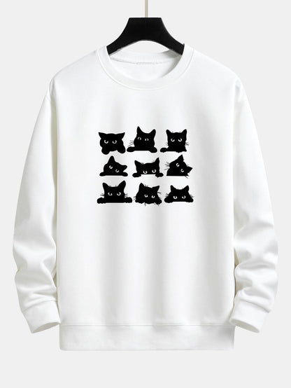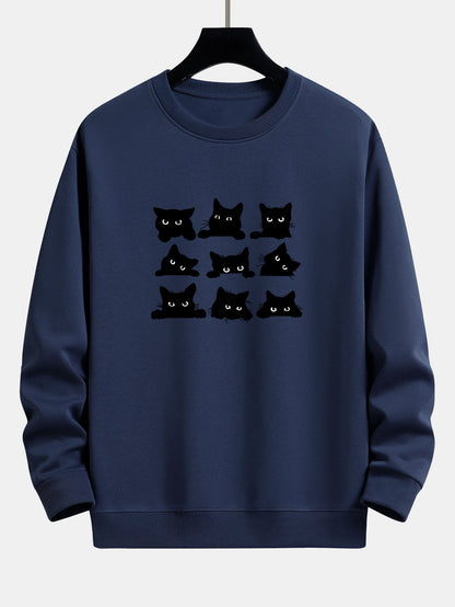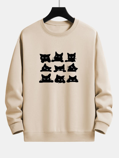 Black Cat Staring Print Relax Fit Sweatshirt