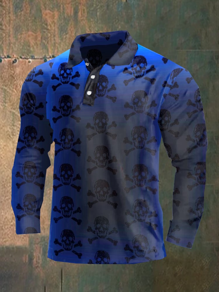 Dark style skull long sleeve polo shirt
