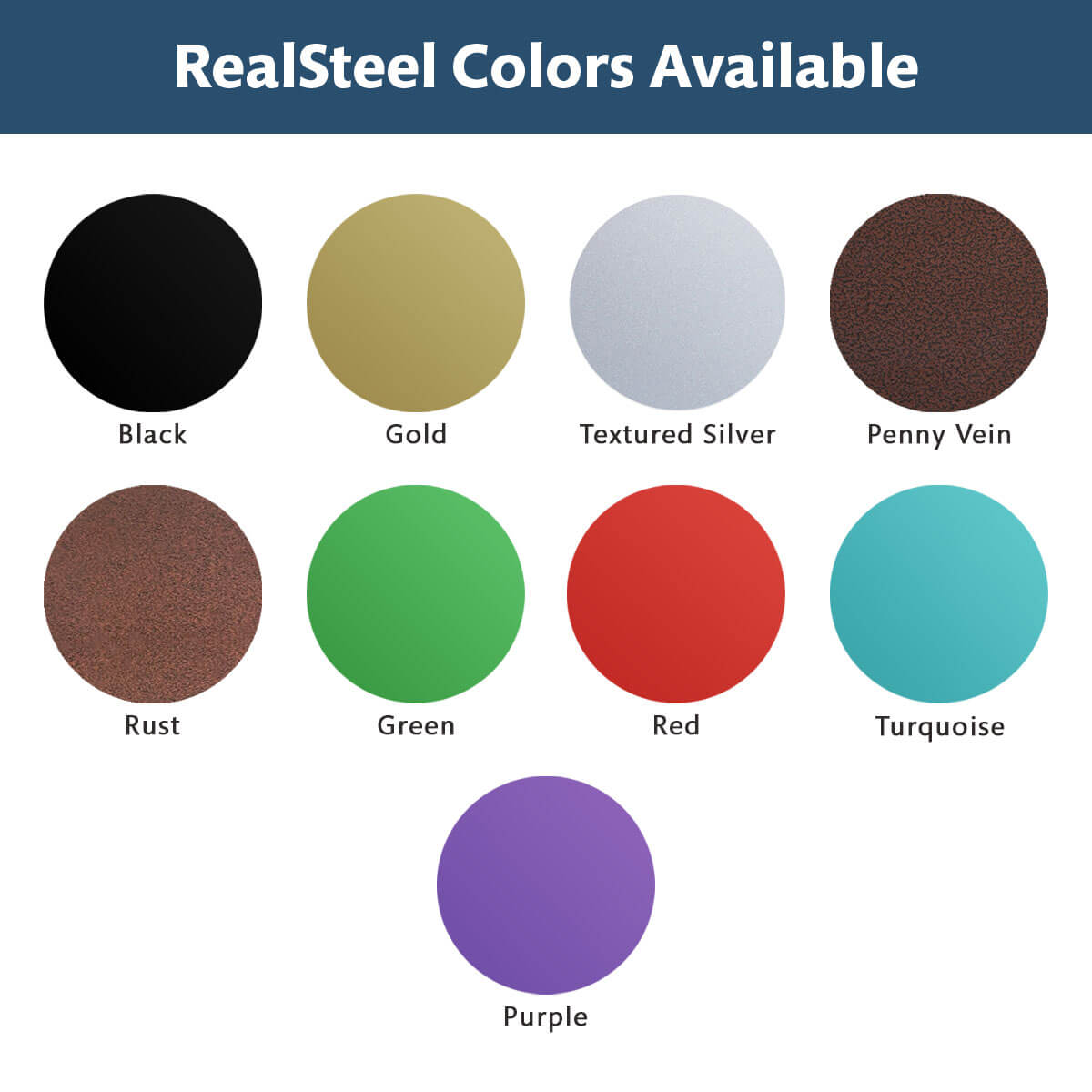 - Available in 8 Colors: Black, Gold, Textured Silver, Penny Vein, Rust, Green, Red, Purple