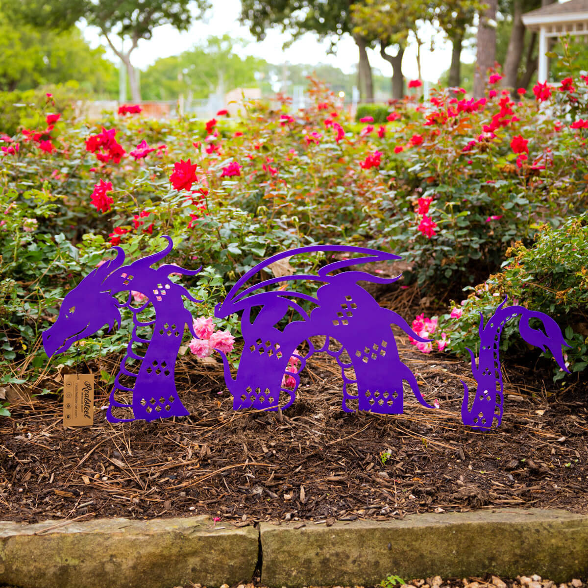 Handcrafted with pride in Texas, our Garden Art - Dragon is a stunning piece of custom art made to withstand years of outdoor use thanks to our weather resistant baked on powder coating.