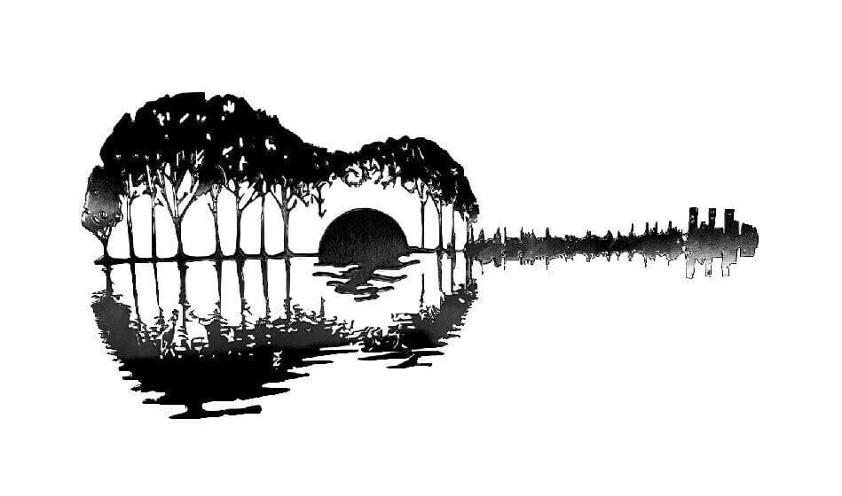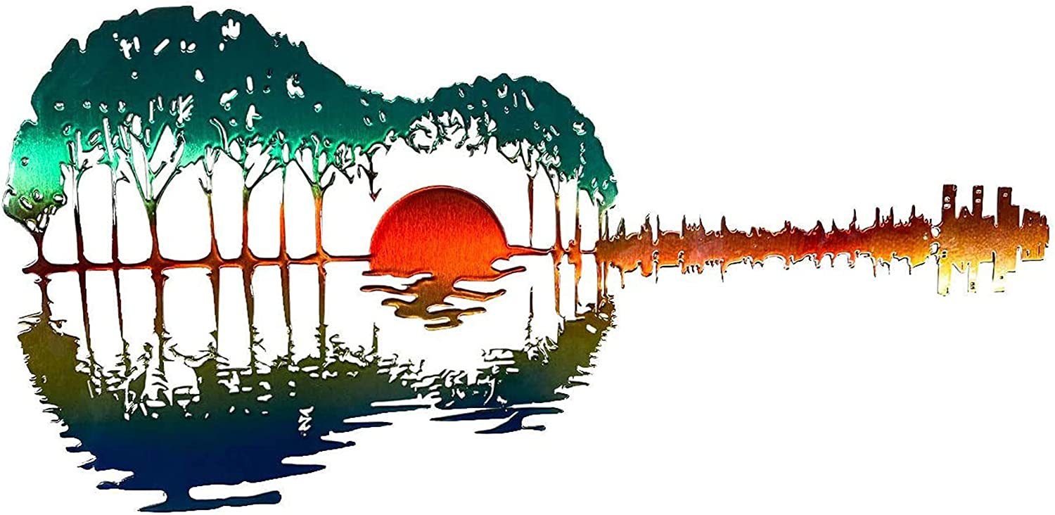 🎸【Artistic Style Design】Featuring an abstract guitar shape creatively designed from trees and the setting sun, this metal guitar art is the perfect metal home decor for those who love music and nature!
