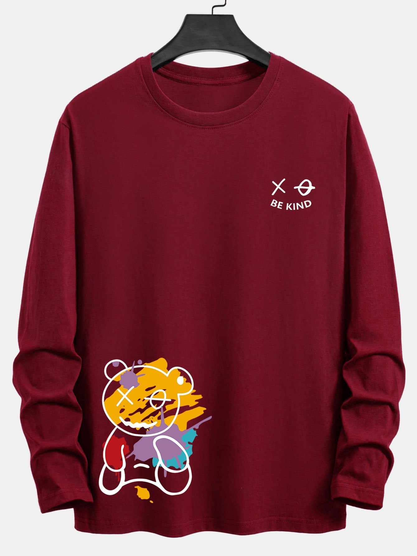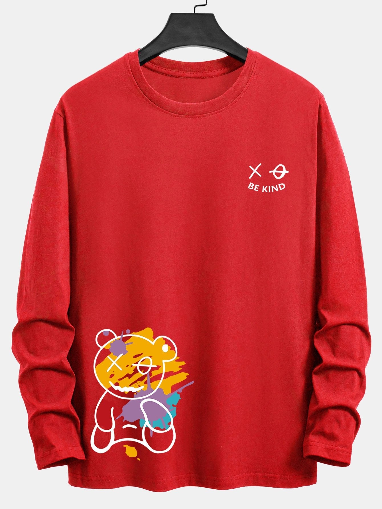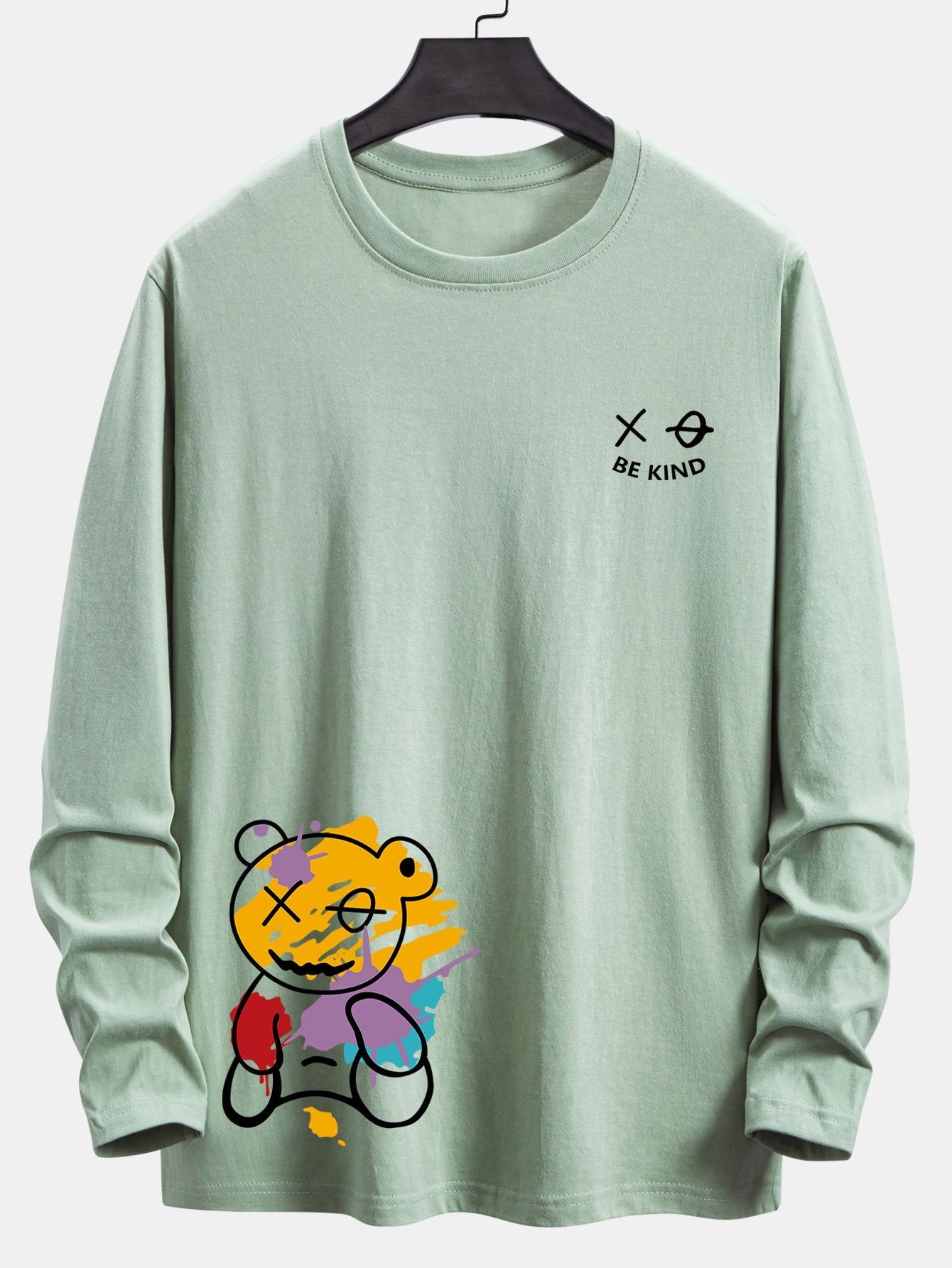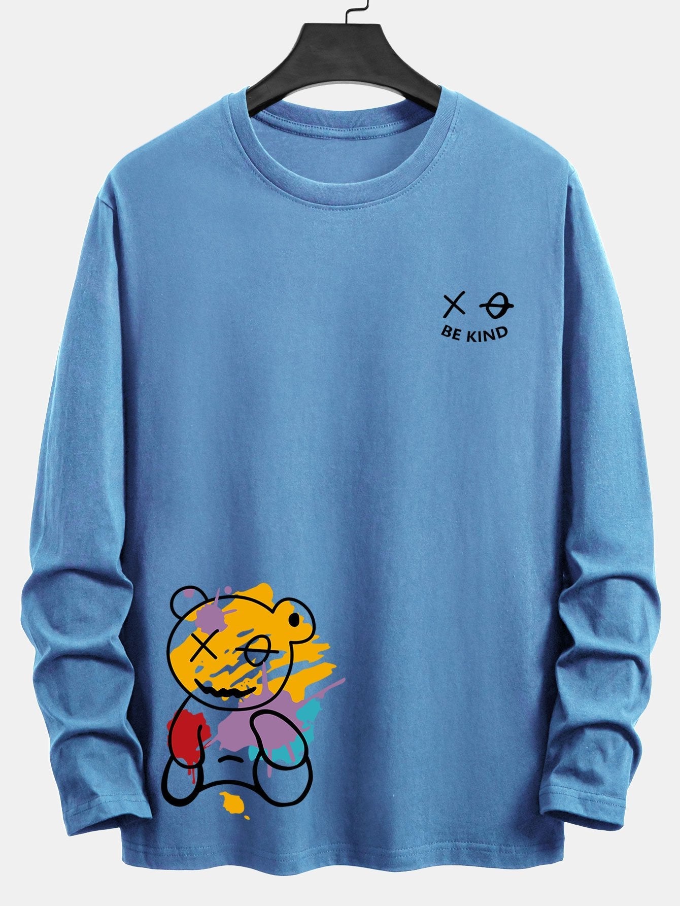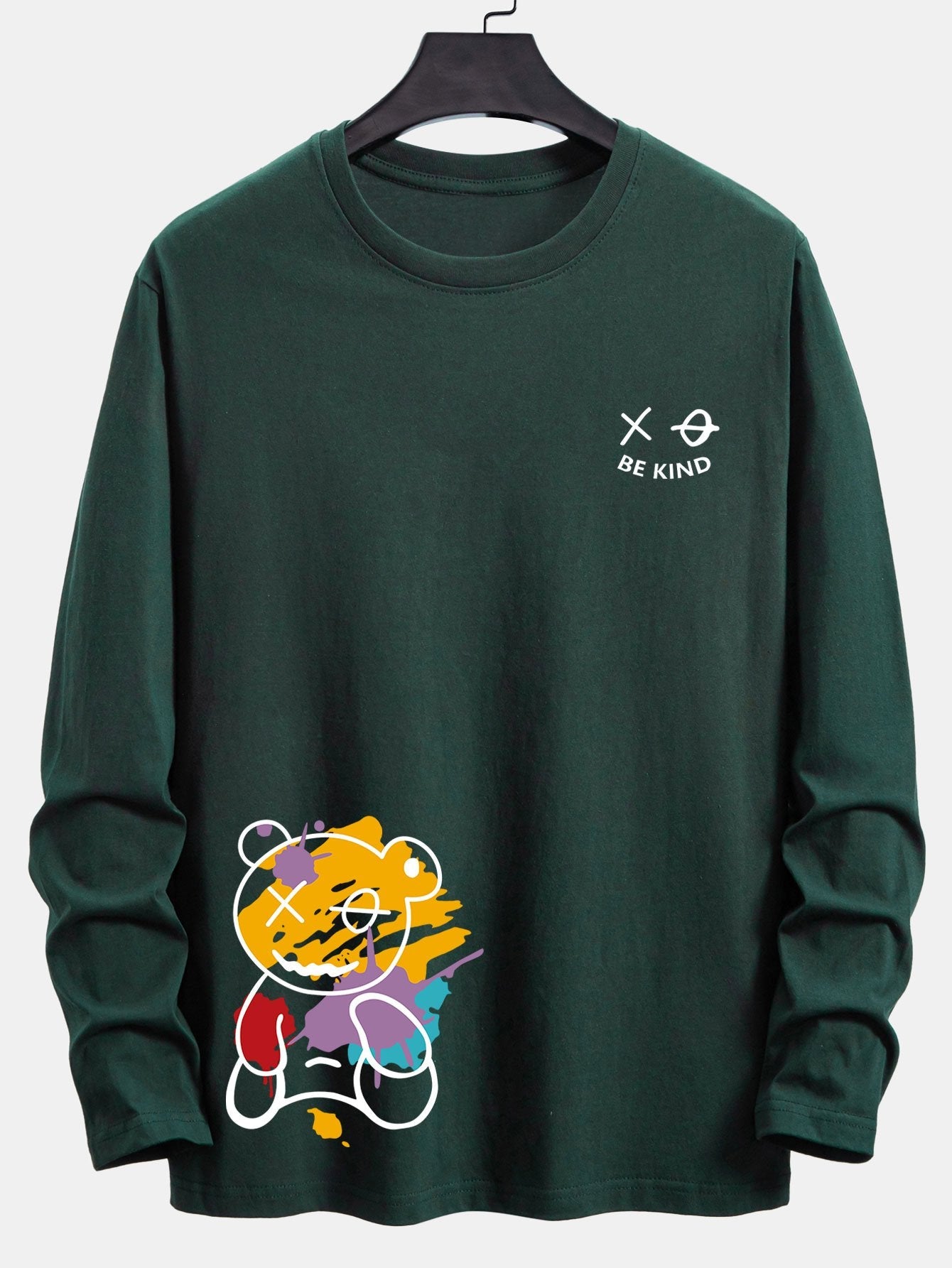 Long Sleeve Graffiti Bear Print Cotton T-Shirt
