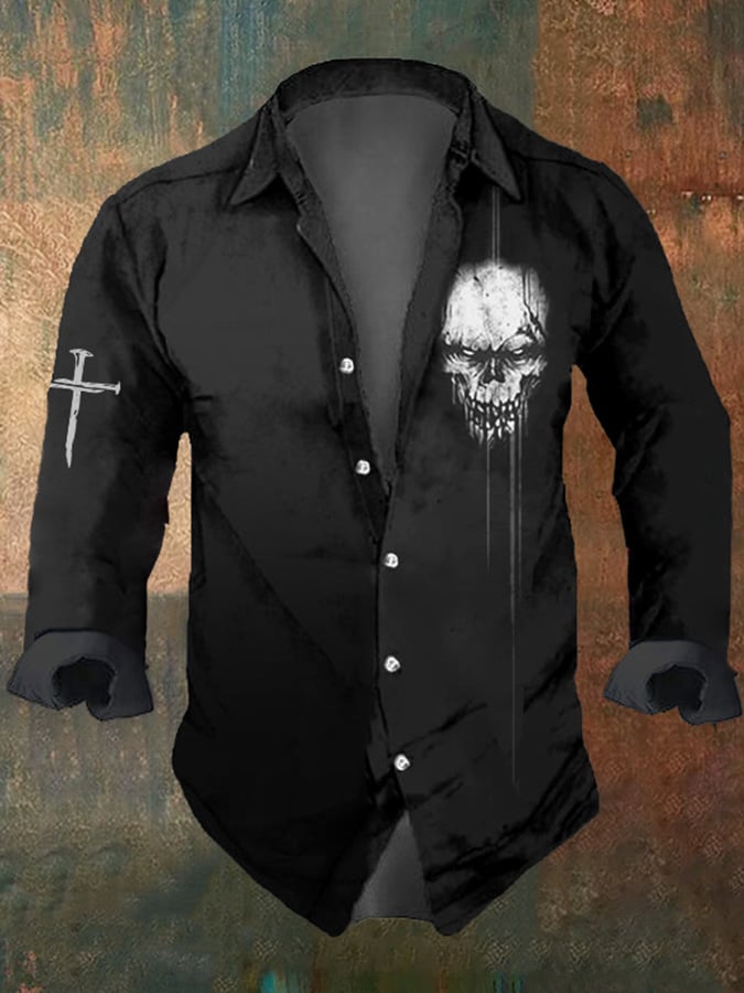 Men's Dark Skull Print Long Sleeve Shirt