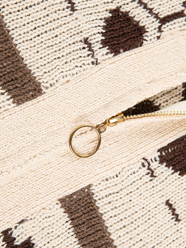 Men's lapel jacquard knitted casual sweater cardigan jacket