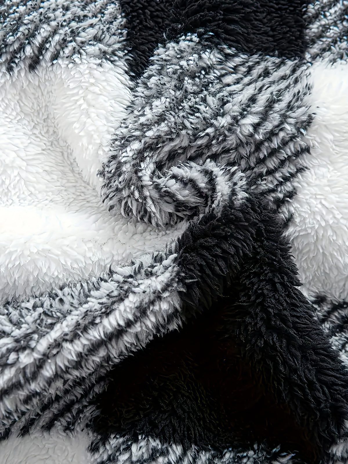 Men's Plaid Casual Fashion Fluffy Fleece Hoodie