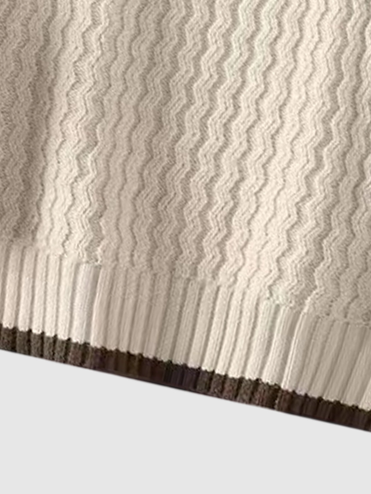 Men's Ribbed Round Neck Long Sleeve Versatile Fake Two-Piece Sweater