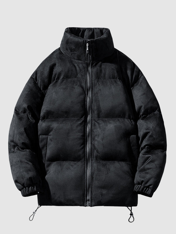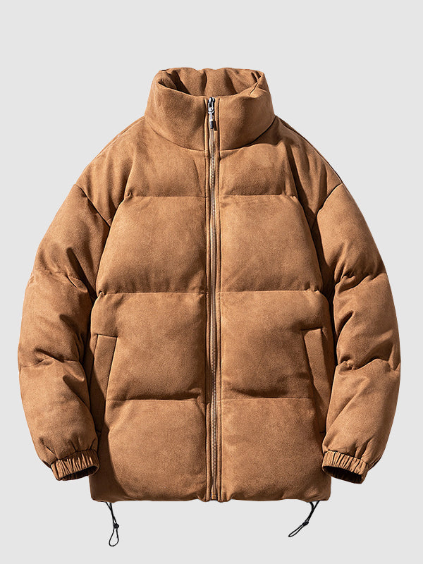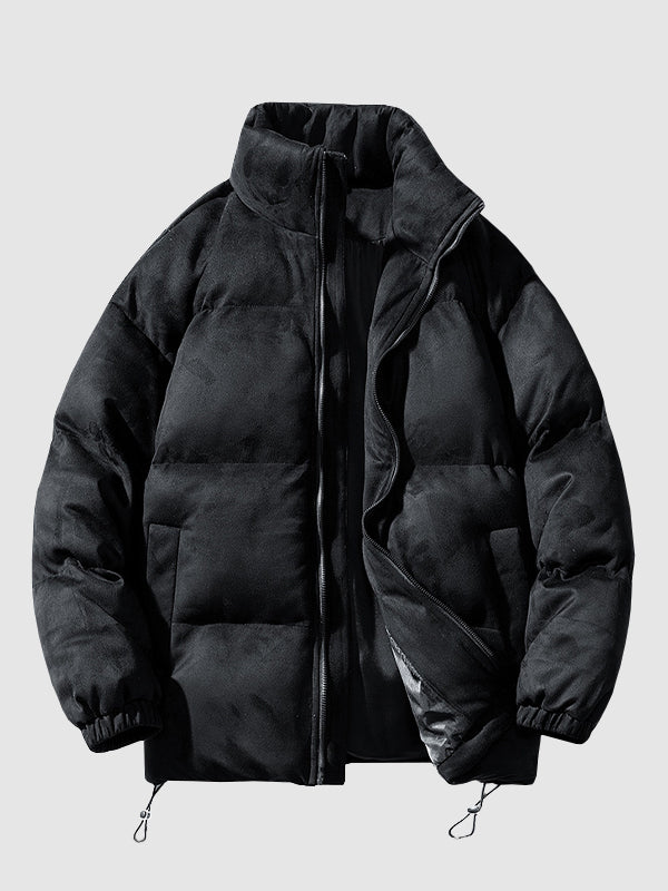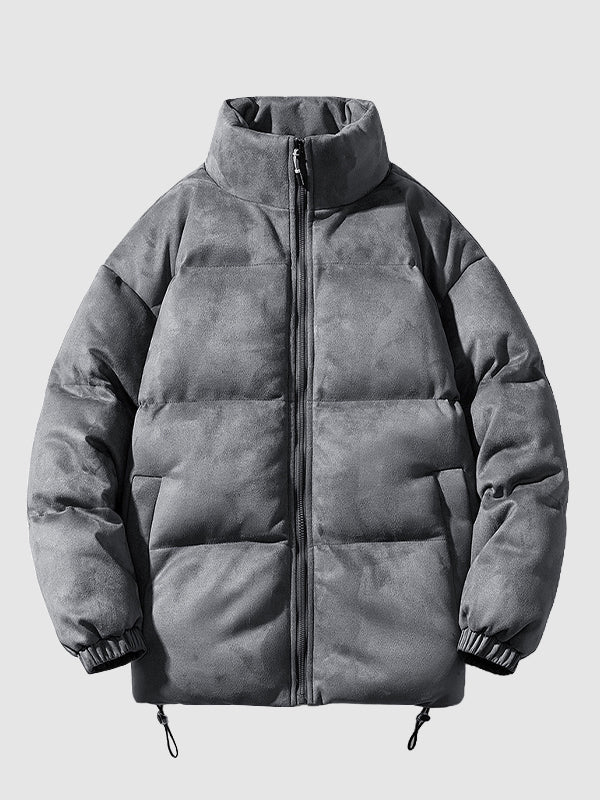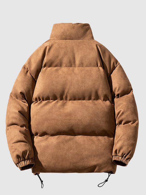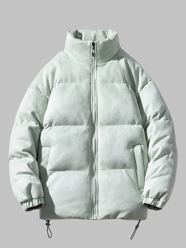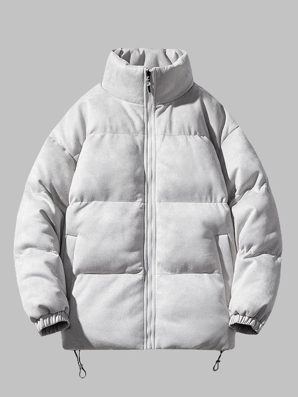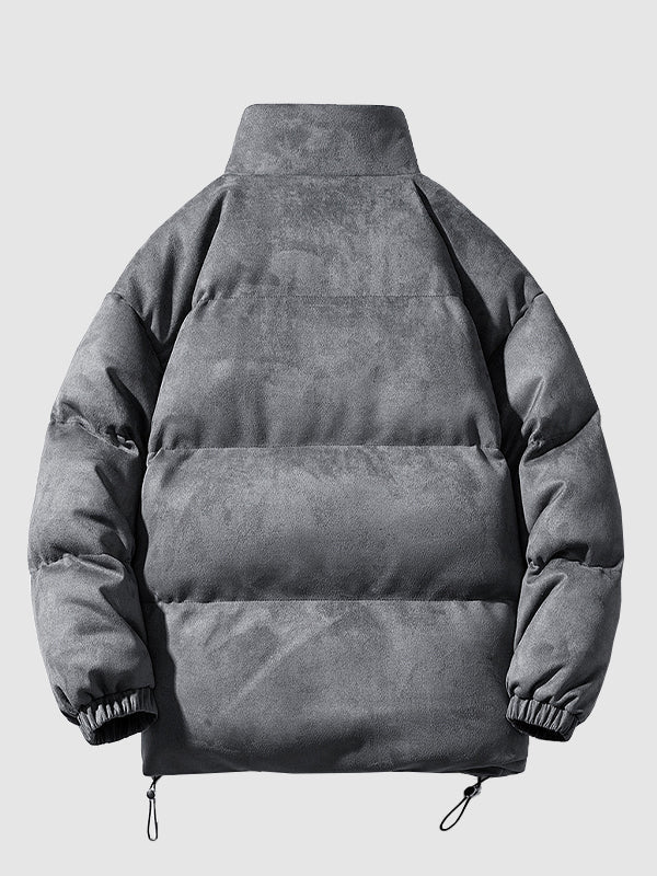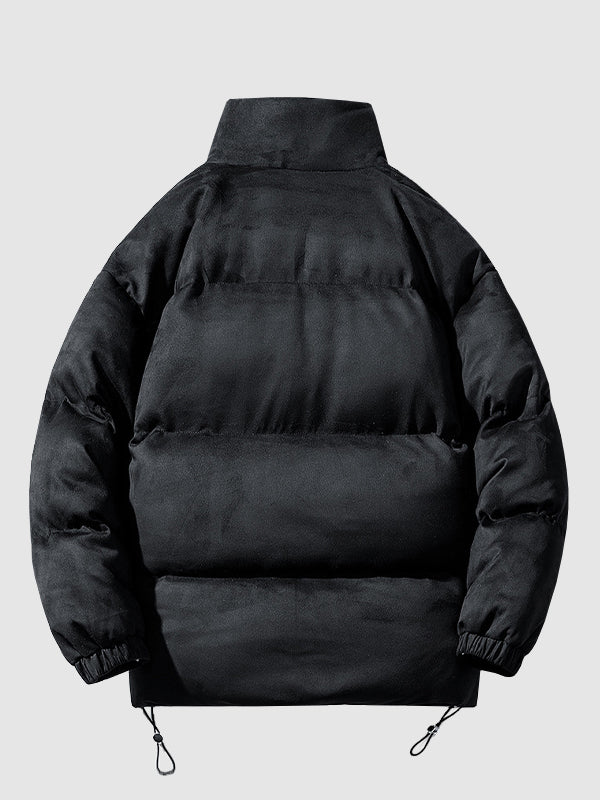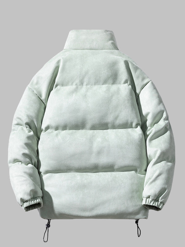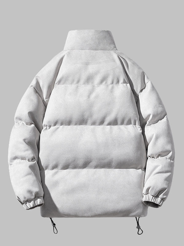 Men's Solid Faux Leather Dual Pocket Zip Stand Collar Padded Jacket