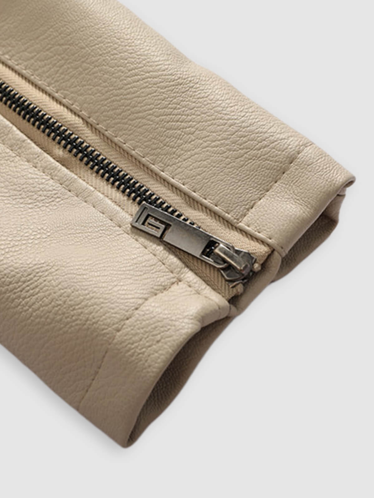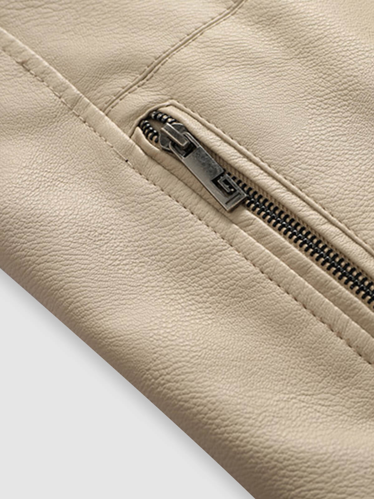 Men's Stand Collar Zipper Plush Hooded Leather Jacket