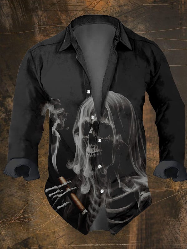 Men's Vintage Dark Skull Print Long Sleeve Shirt