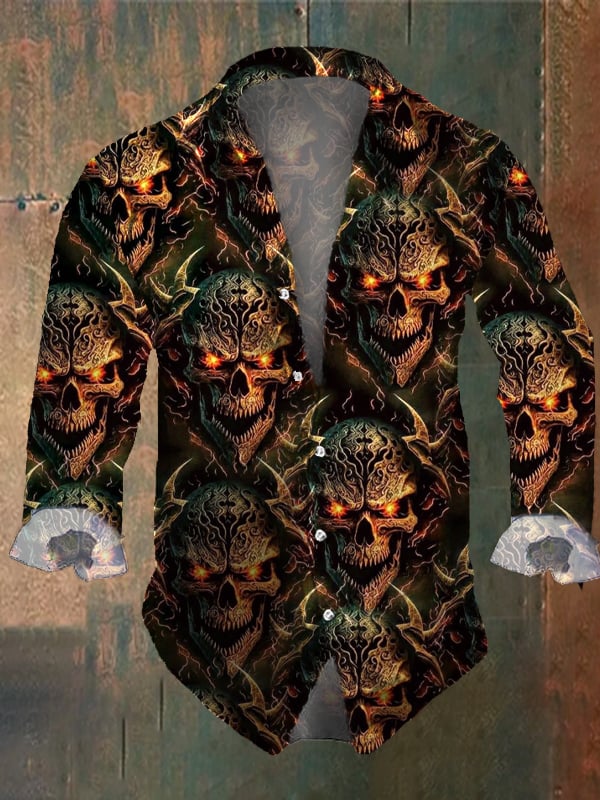 Men's Vintage Dark Skull Print Long Sleeve Shirt