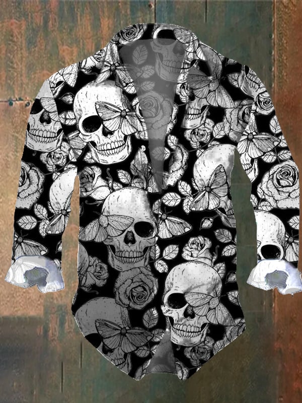 Men's Vintage Dark Skull Print Long Sleeve Shirt