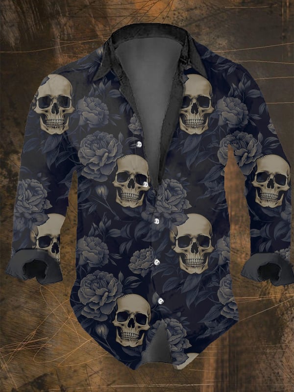 Men's Vintage Dark Skull Print Long Sleeve Shirt