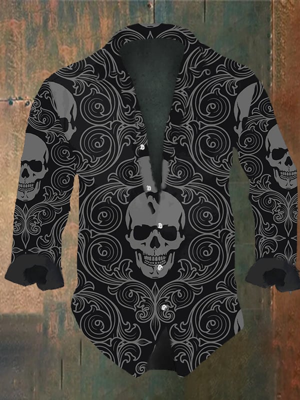 Men's Vintage Dark Skull Print Long Sleeve Shirt