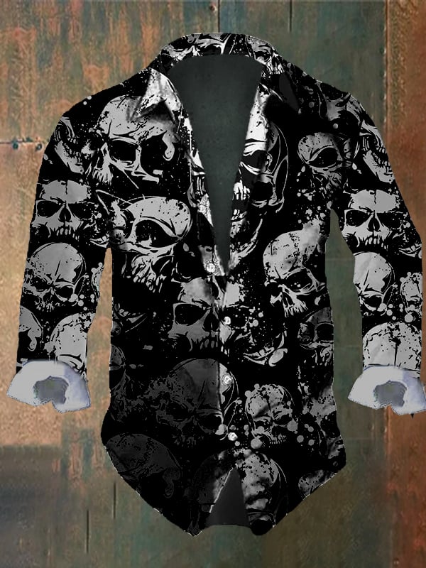 Men's Vintage Dark Skull Print Long Sleeve Shirt