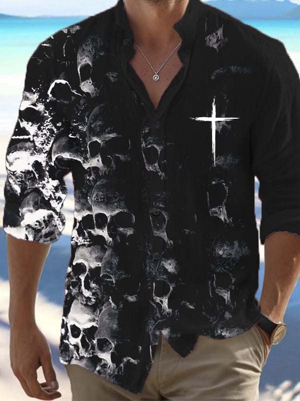 Men's Vintage Dark Skull Print Long Sleeve Shirt
