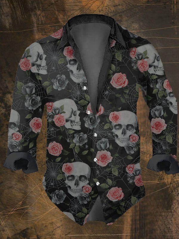 Men's Vintage Dark Skull Print Long Sleeve Shirt