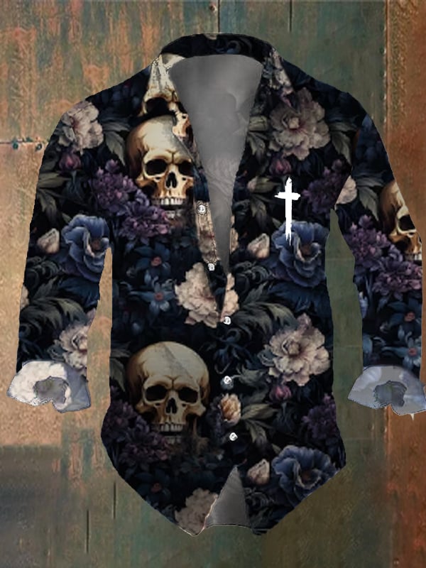 Men's Vintage Dark Skull Print Long Sleeve Shirt