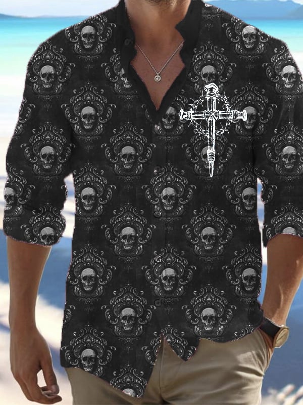 Men's Vintage Dark Skull Print Long Sleeve Shirt