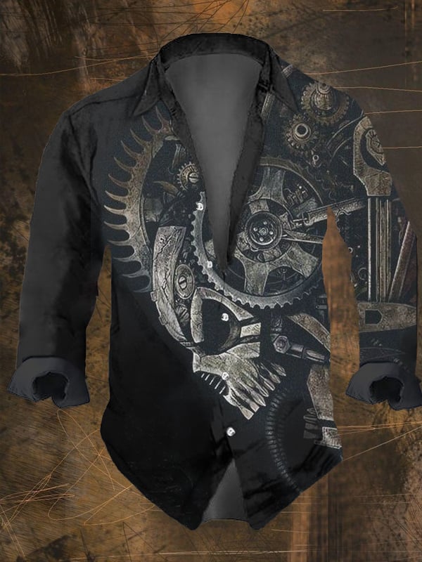 Men's Vintage Dark Skull Print Long Sleeve Shirt