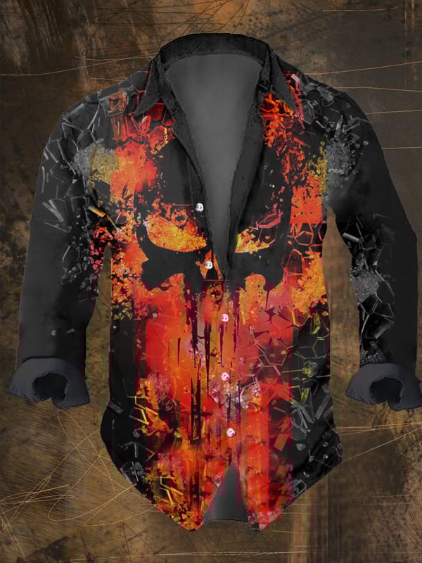 Men's Vintage Dark Skull Print Long Sleeve Shirt