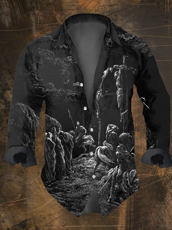 Men's Vintage Dark Skull Print Long Sleeve Shirt
