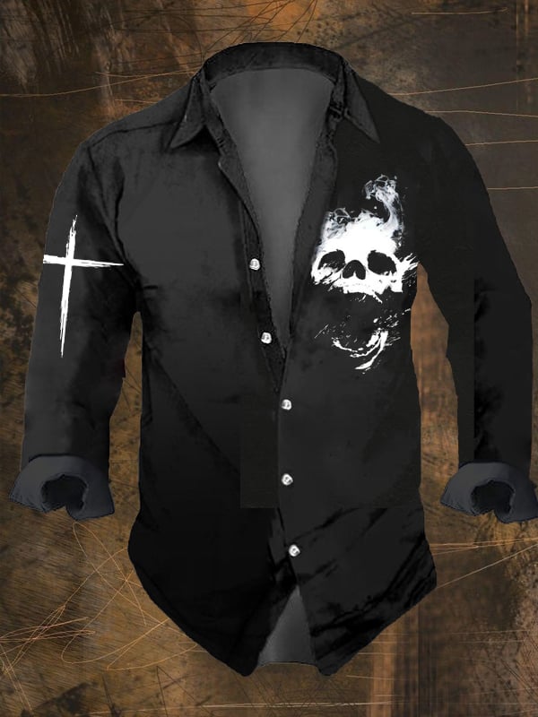 Men's Vintage Dark Skull Print Long Sleeve Shirt