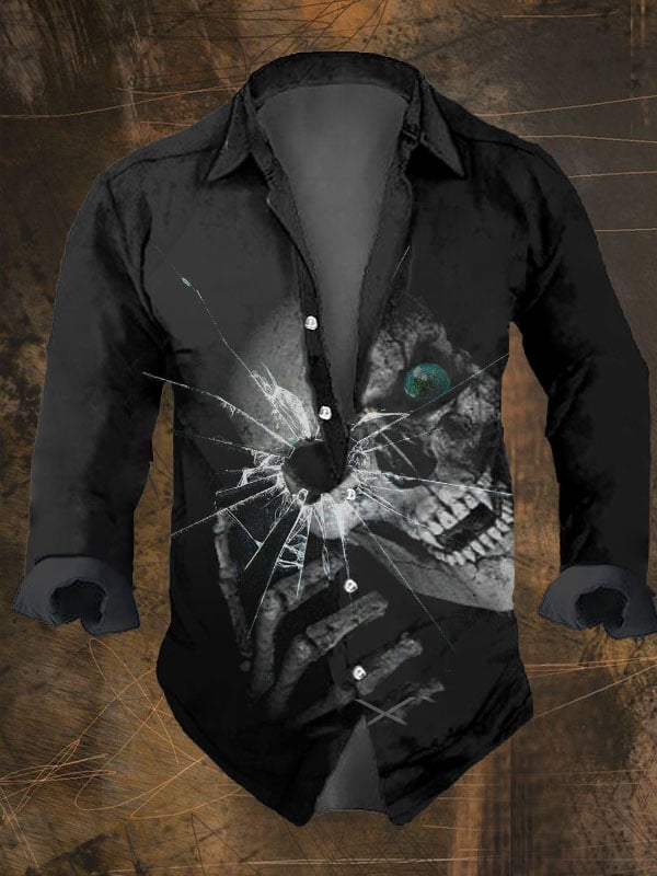 Men's Vintage Dark Skull Print Long Sleeve Shirt
