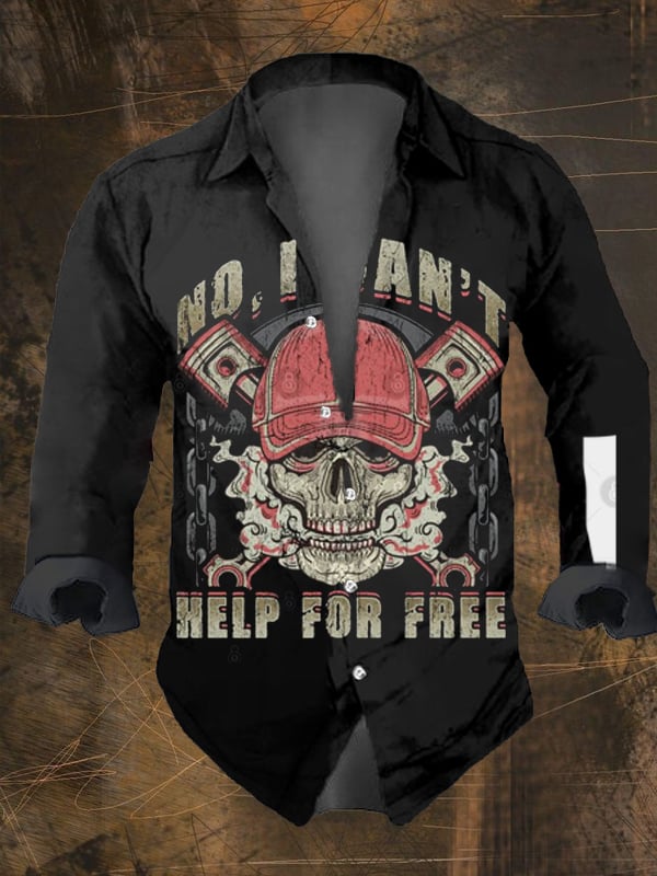 Men's Vintage Dark Skull Print Long Sleeve Shirt