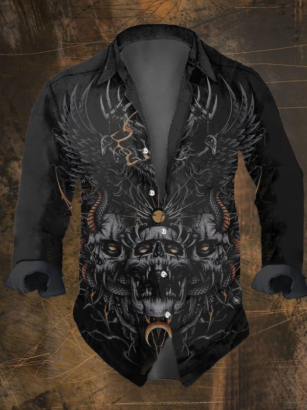 Men's Vintage Ethnic Viking Print Long Sleeve Shirt