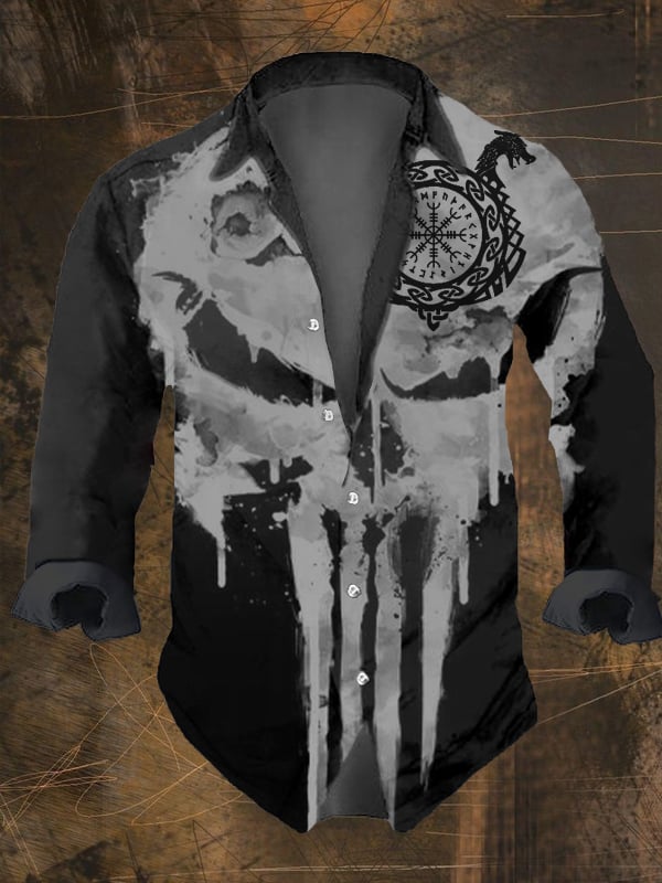 Men's Vintage Ethnic Viking Print Long Sleeve Shirt