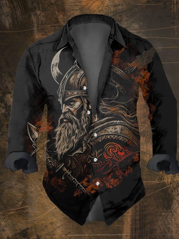 Men's Vintage Ethnic Viking Print Long Sleeve Shirt