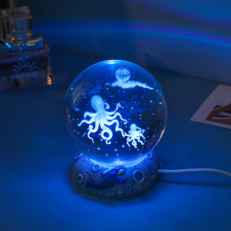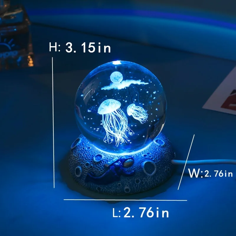 A mesmerising ocean crystal ball with a creative LED base that ignites your surroundings with a warm glow. The light that can change color.Use it as mood lighting, a nightlight, to enhance photography and videos, or as a creative gift (for festival, anniversaries, birthdays).