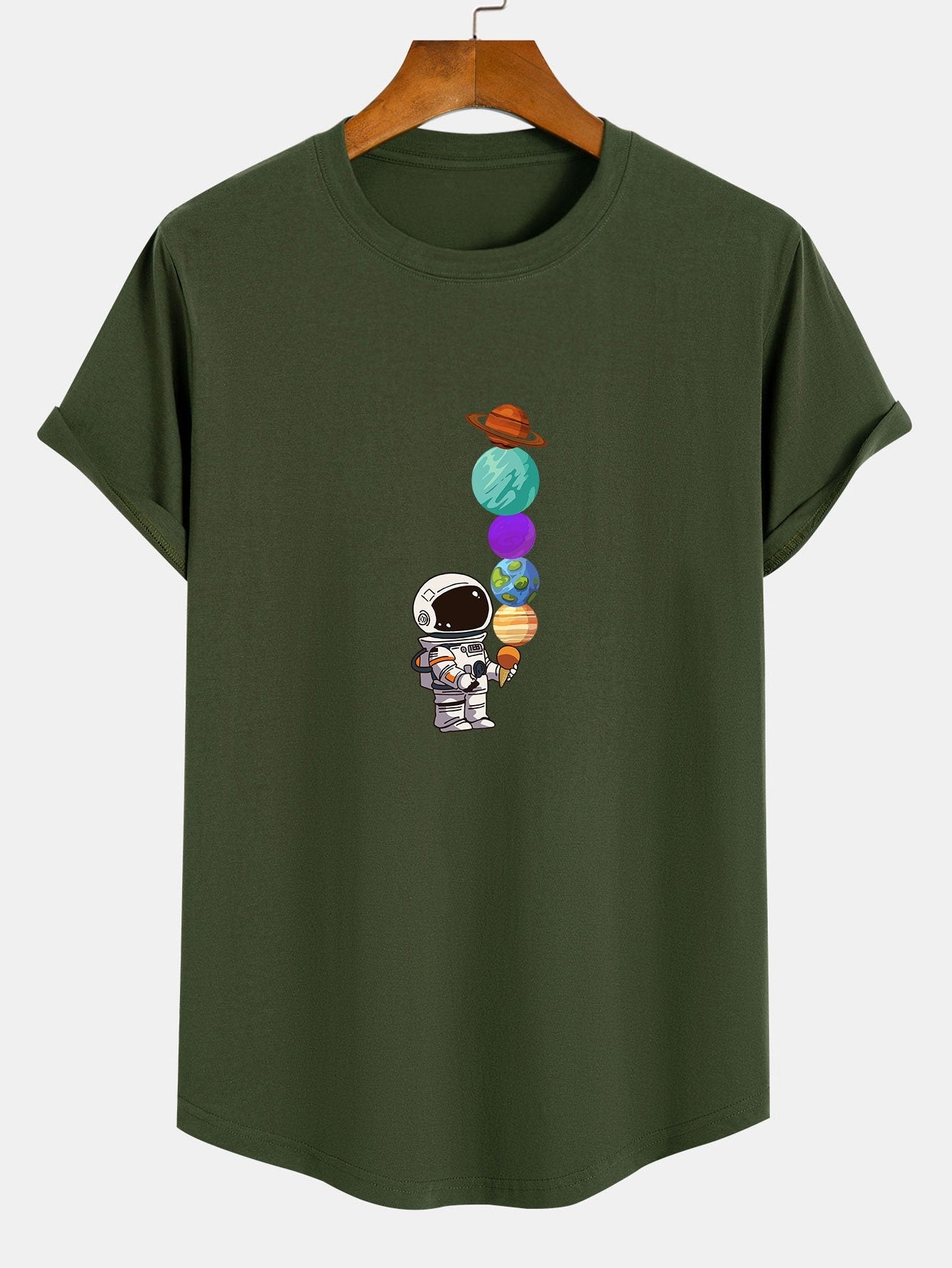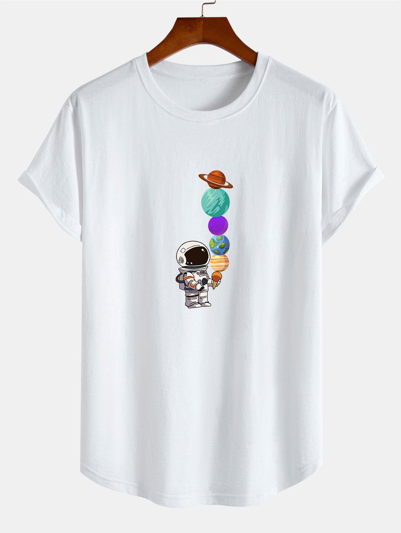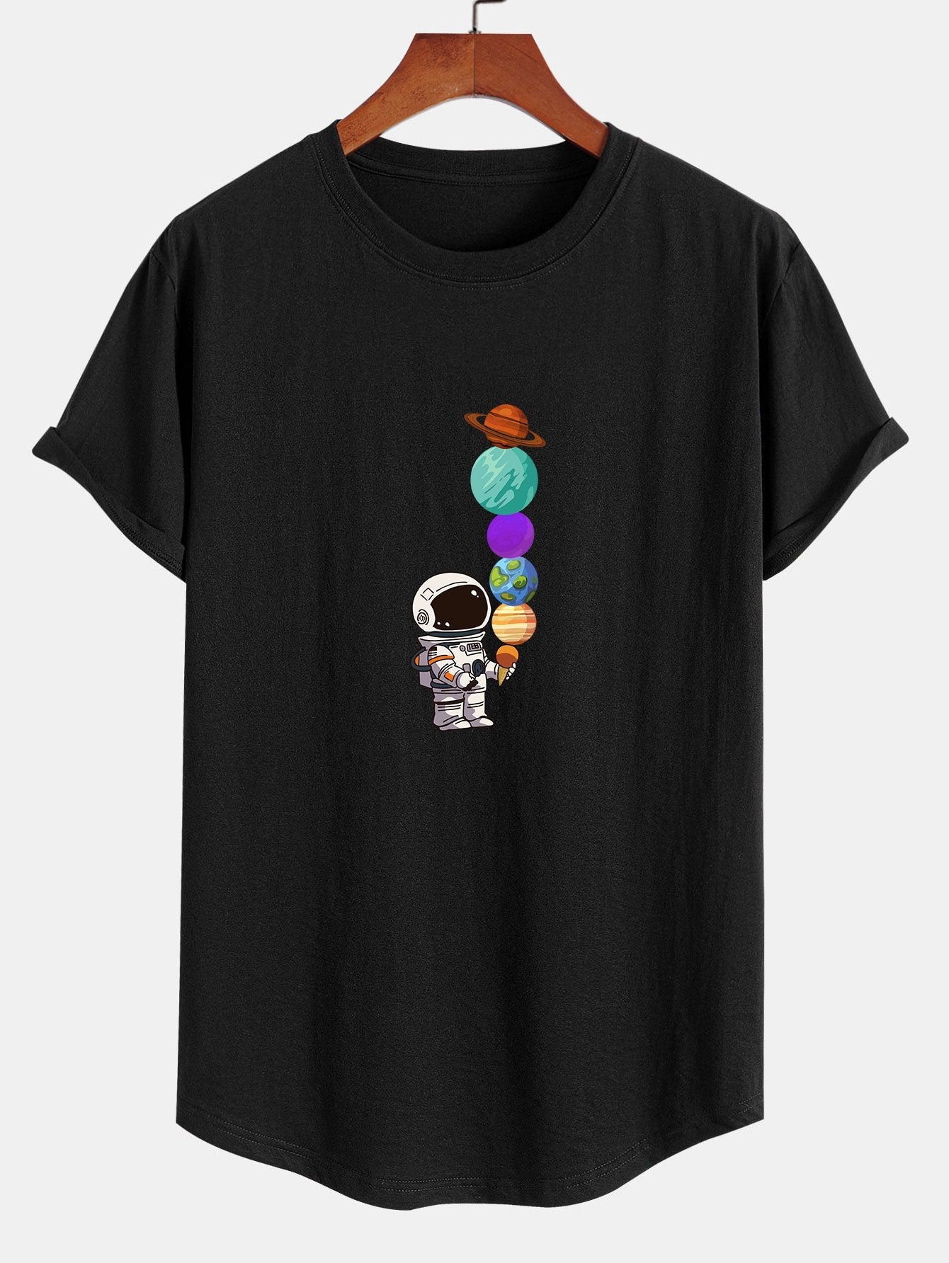 Planet Astronaut Print Cotton Arc Hem T-Shirt