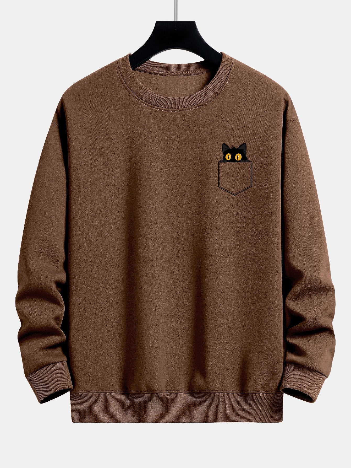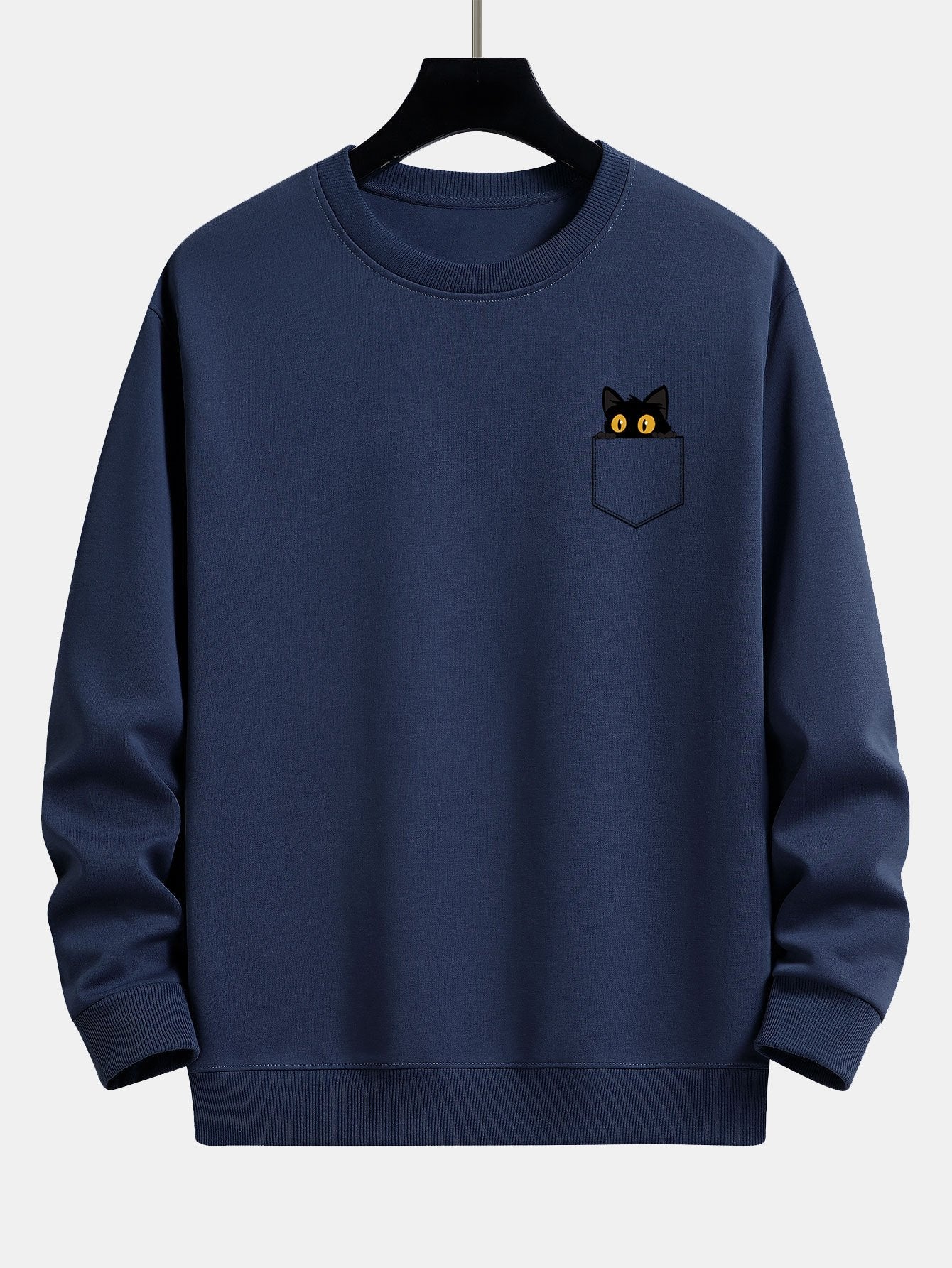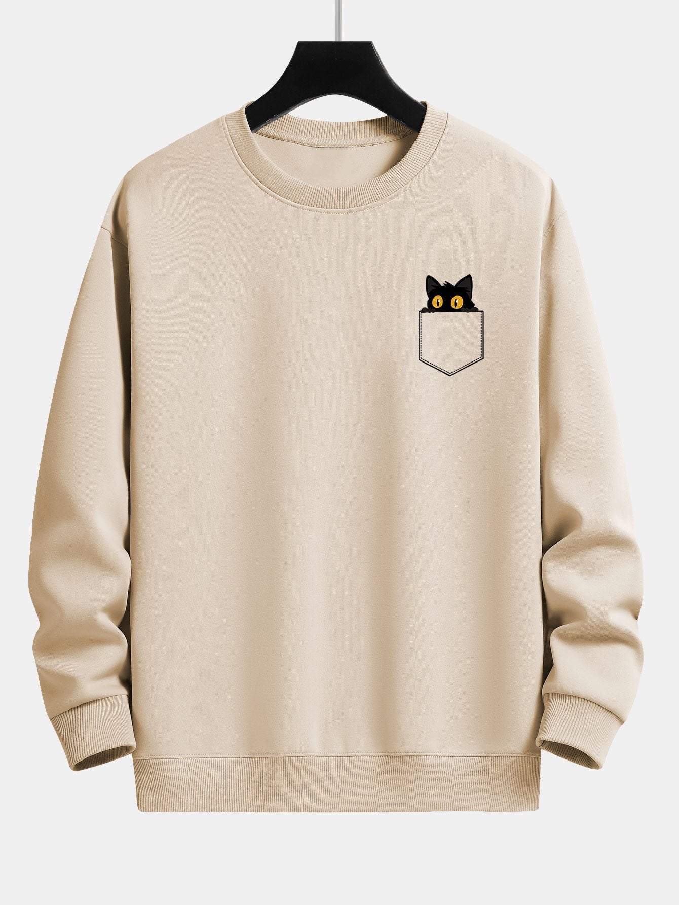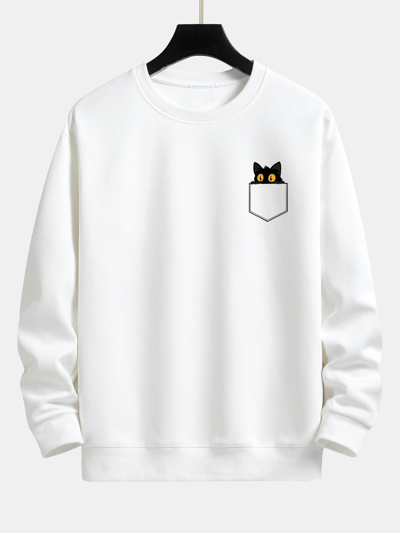 Pocket Black Cat Print Relax Fit Sweatshirt