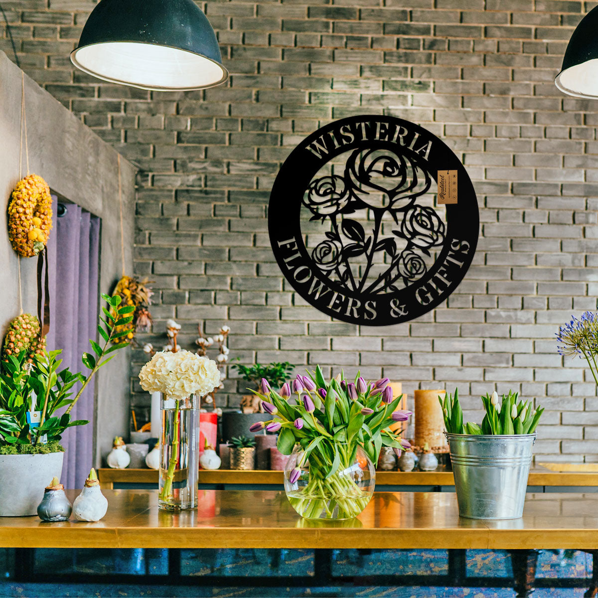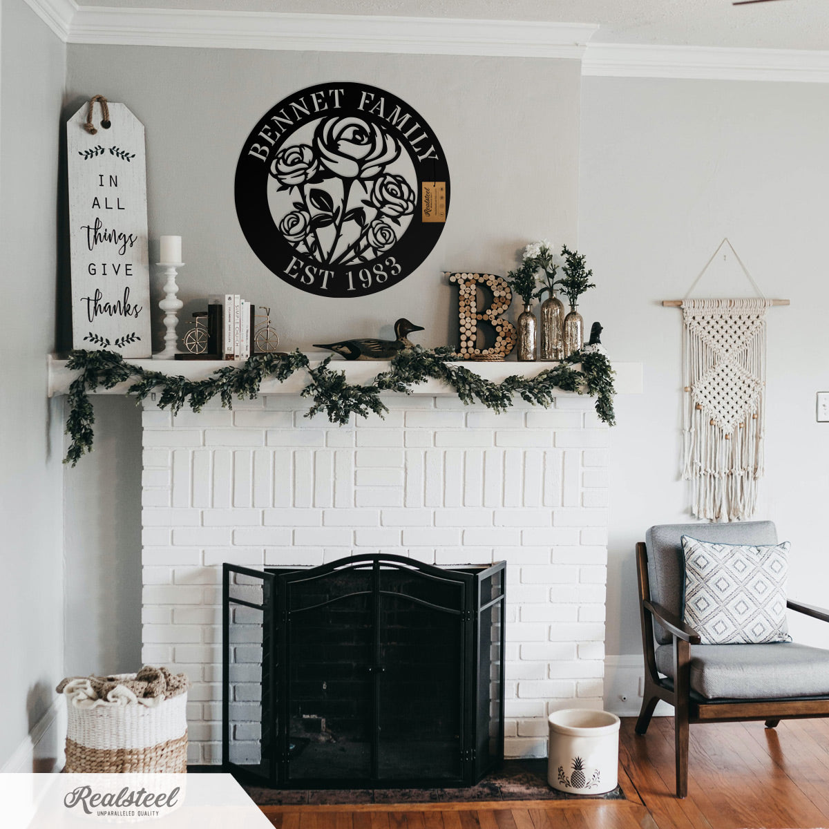 Handcrafted with pride in Texas using 100% American made steel, our Rose Monogram is a stunning piece of custom art made to withstand years of indoor/outdoor use thanks to our weather resistant baked on powder coating.