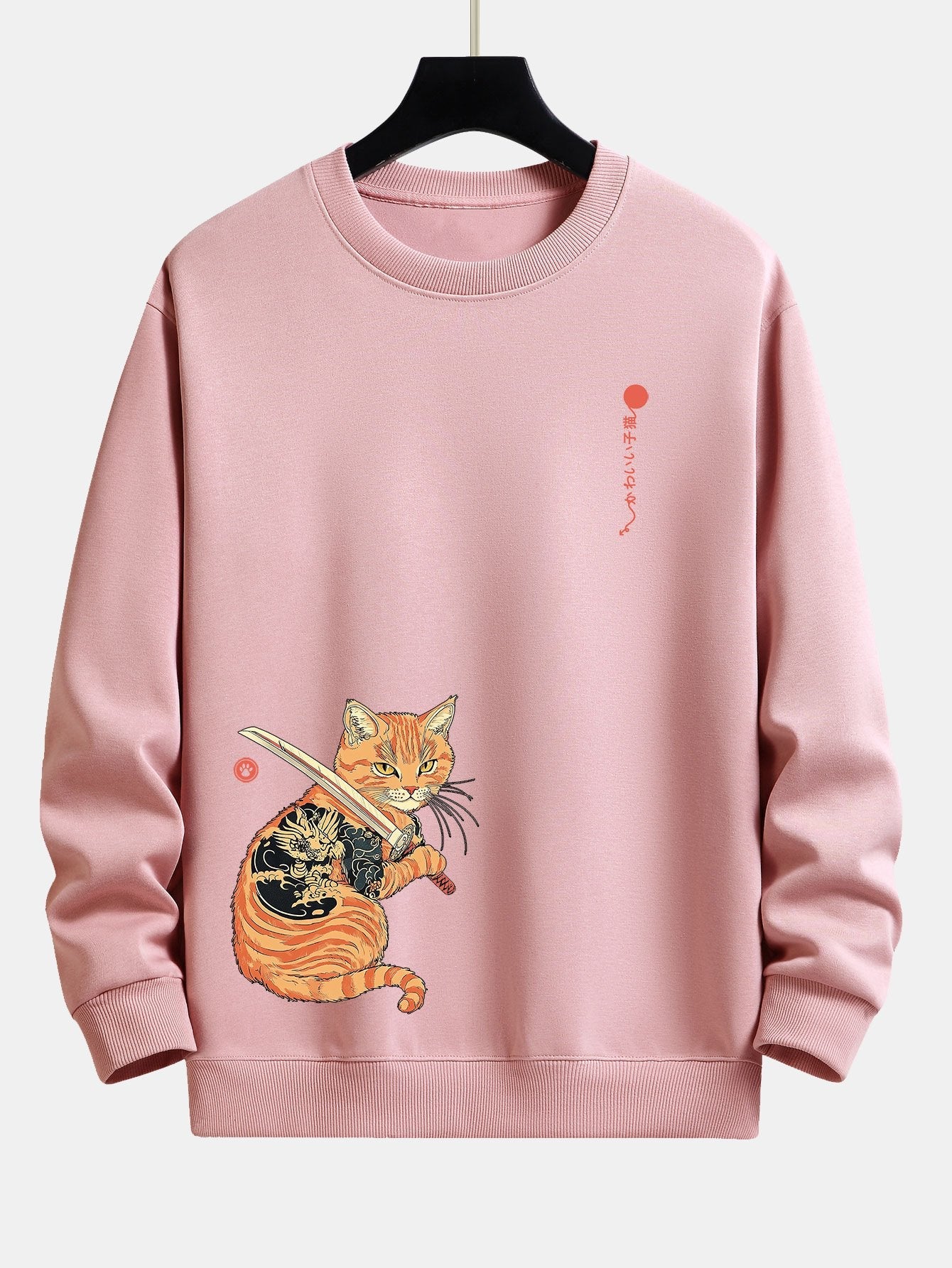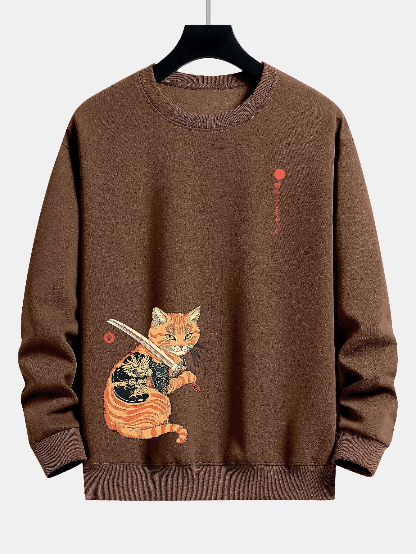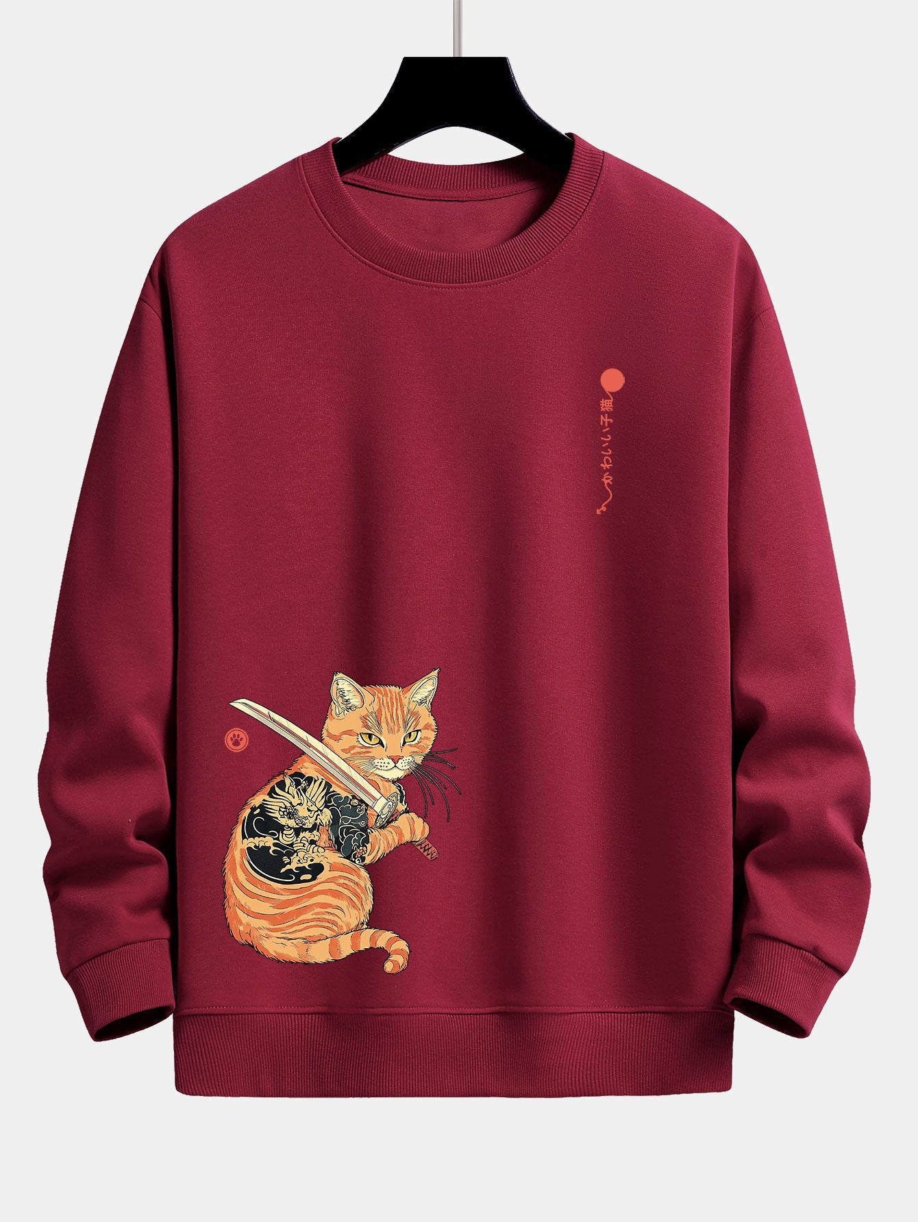 Samurai Warrior Cat Print Relax Fit Sweatshirt