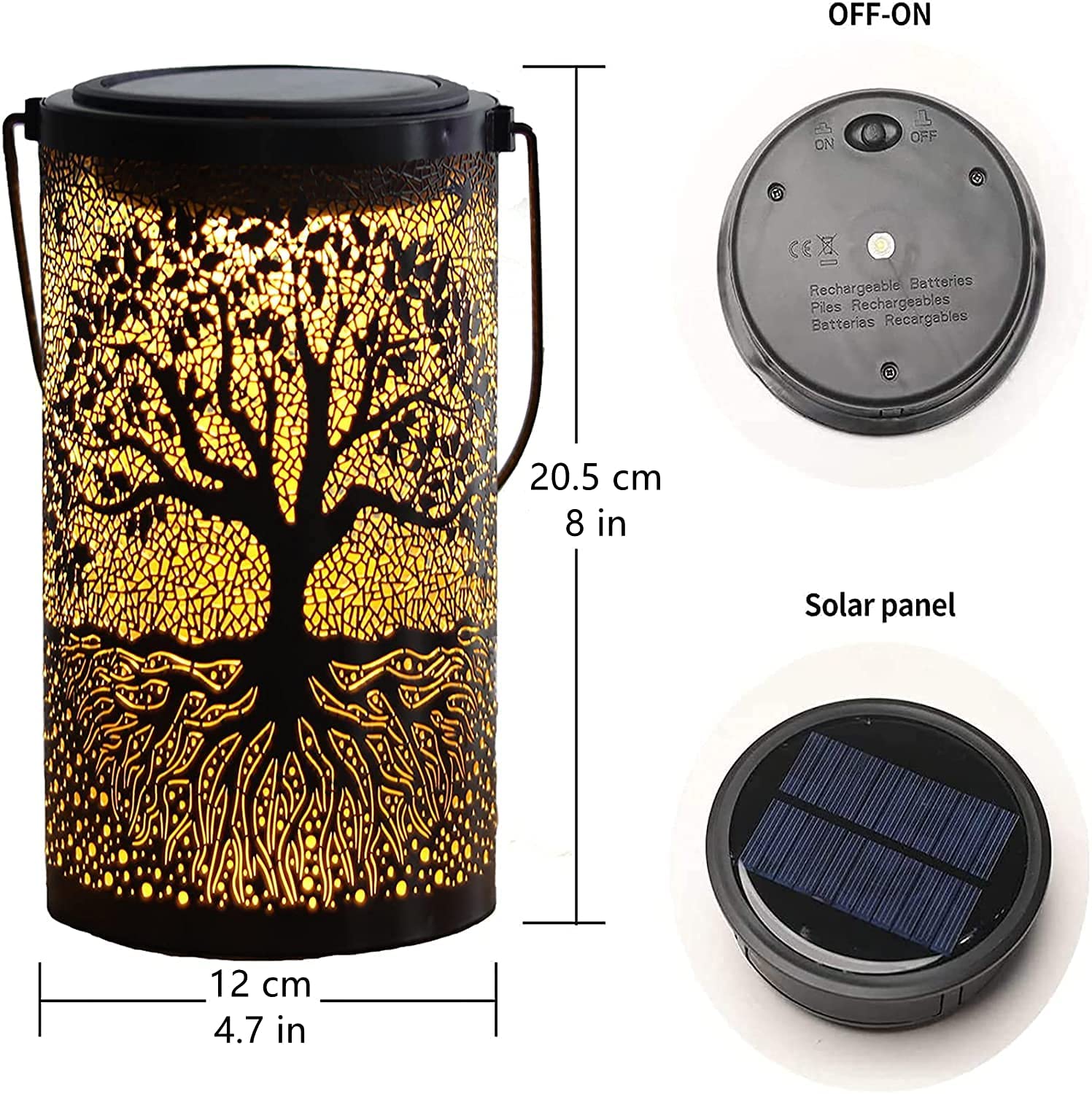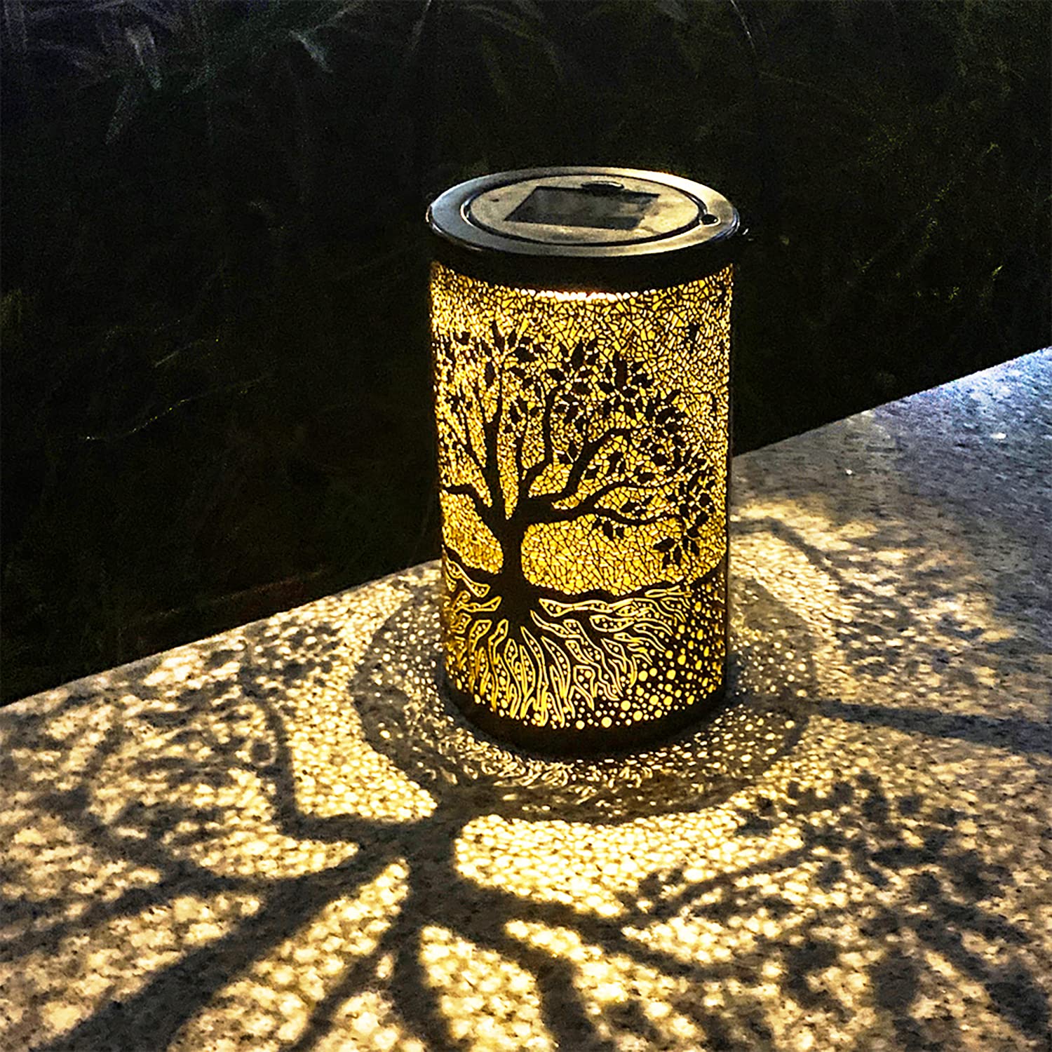 OUTDOOR SOLAR LANTERN: Beautiful outdoor solar pendant lanterns are made of high-quality corrosion-resistant metal, in the dark, soft light with a custom tree hollow pattern adds beauty to your yard, and can be hung on the outdoor patio, garden yard porch or placed on the ground.