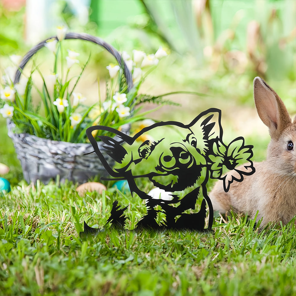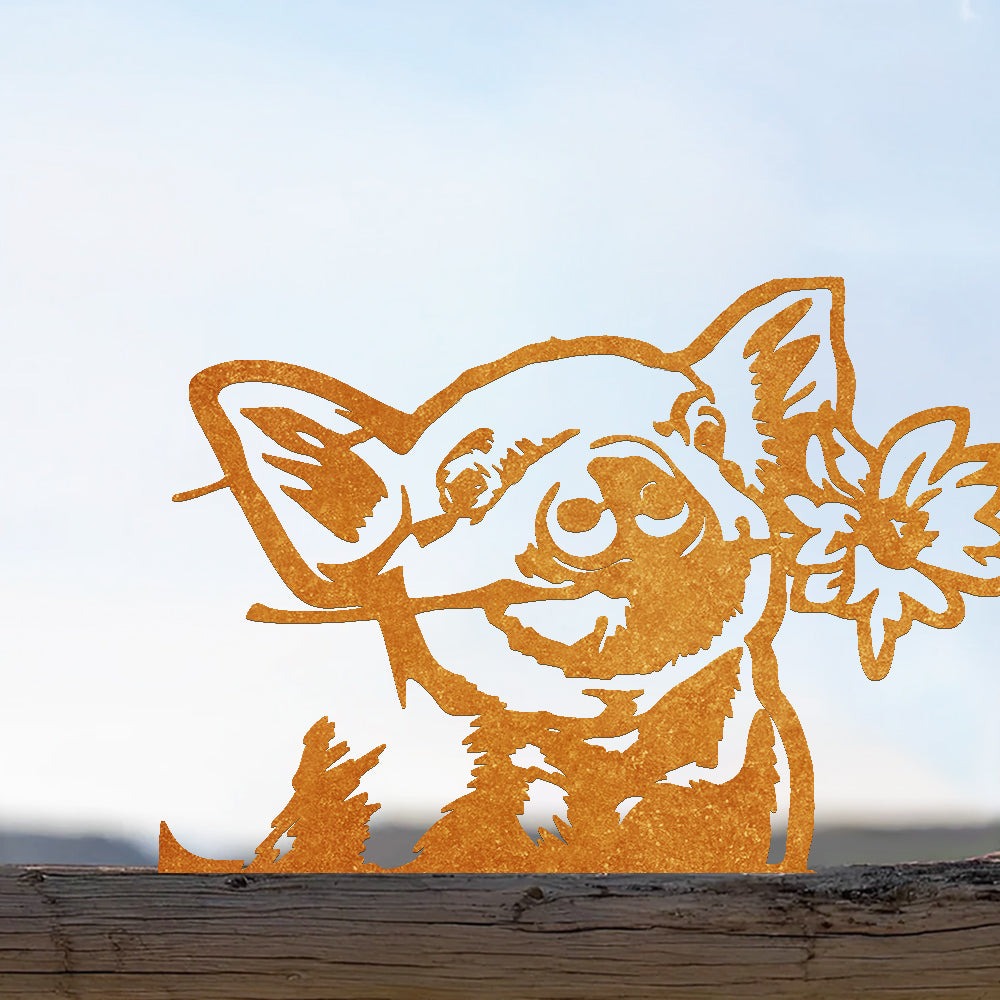 Suckling Pig and Flower Farm Peeping Animal Outdoor Metal Garden Art